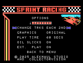 Douze tracés sont disponibles ; certains présentent des plaques d’huiles. Le joueur se bat contre le temps afin d’avoir le score maximum.